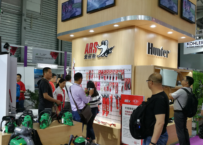 設(shè)備展示區(qū)更是吸引了眾多專業(yè)觀眾的眼光,綠友集團(tuán)展示了自主研發(fā)、生產(chǎn)以及代理的剪草機(jī)、打藥機(jī)、灌溉系統(tǒng)、冷霧系統(tǒng)、電動車輛、粉碎機(jī)、無人機(jī)、園藝工具、植保用品等十多種產(chǎn)品。期間,綠友集團(tuán)展位上一直人潮涌動,自產(chǎn)設(shè)備引來諸多關(guān)注。有問粉碎機(jī)的,有了解大型零轉(zhuǎn)彎剪草機(jī)的,有被冷霧系統(tǒng)所吸引的,有圍觀無人機(jī)的,更有很多觀眾現(xiàn)場購買愛麗斯園藝工具。綠友工作人員不知疲倦地解答著各種各樣的問題,也收獲了大量訂單。