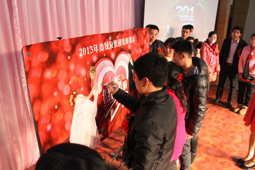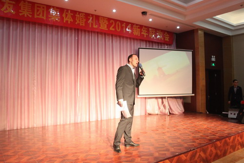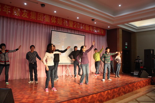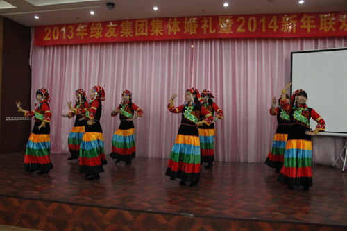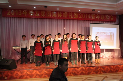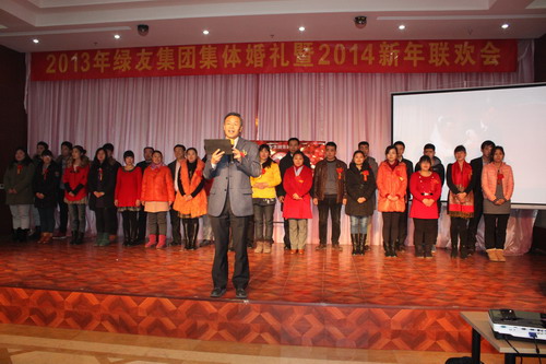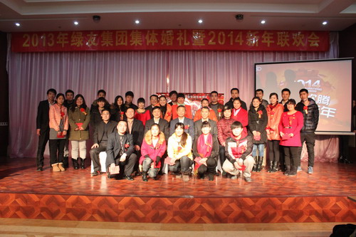 12月29日,“2013年綠友集團集體婚禮暨2014年元旦聯歡會”在總部所在地附近的德濟緣酒店舉辦,總部人員和北京綠友園林、北京工廠的全體人員參加了活動;在李敏總裁的關心下,會務組人員還特別邀請了8名退休員工前來參加活動。