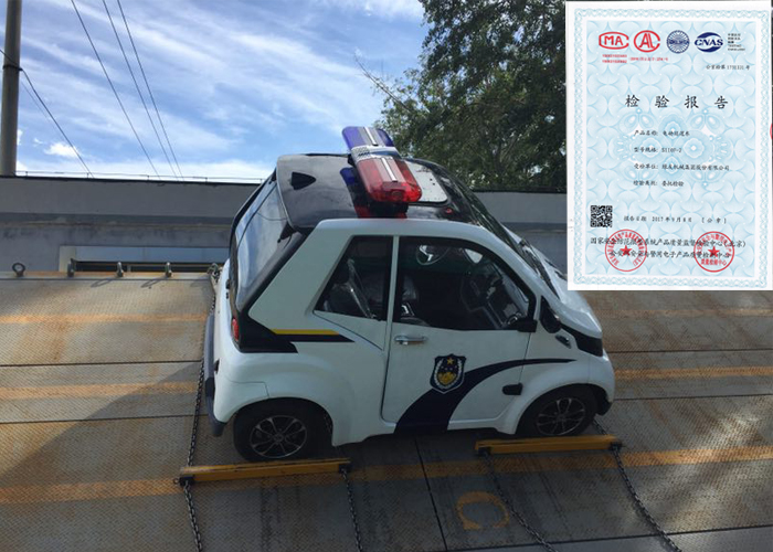 9月8 日, 綠友集團(tuán)自主研發(fā)的GREENMAN 兩座巡邏車順利通過“公安部安全與警用電子產(chǎn)品質(zhì)量檢驗(yàn)中心”型式試驗(yàn)認(rèn)證。取得該認(rèn)證后,綠友兩座巡邏車可以合法地使用警徽等警用標(biāo)志。該認(rèn)證要求較高,綠友車輛以優(yōu)異的性能一次性通過。為了提升GREENMAN 巡邏車在公安、武警、消防等行業(yè)的市場競爭力,我公司委托國家安全防范報警系統(tǒng)產(chǎn)品質(zhì)量監(jiān)督檢驗(yàn)中心和公安部安全與警用電子產(chǎn)品質(zhì)量檢測中心,針對GREENMAN 兩座巡邏車的主要技術(shù)參數(shù)、制動性能、車外噪聲、側(cè)傾穩(wěn)定性、轉(zhuǎn)向性能、控制設(shè)備絕緣電阻、線束、專用接線盒、續(xù)駛里程、防雨密封性,防火要求等項(xiàng)目進(jìn)行了檢驗(yàn)測試,所有檢驗(yàn)項(xiàng)目均符合檢驗(yàn)標(biāo)準(zhǔn)要求,最終檢測結(jié)果證明了GREENMAN 兩座巡邏車質(zhì)量的可靠性。