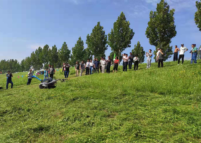 今年夏天,綠友集團相關人員和德國Brielmaier公司兩名工程師一行來到山東東營市,在酷日和暴雨的黃河大堤上檢驗這臺多功能剪草機的使用效果。