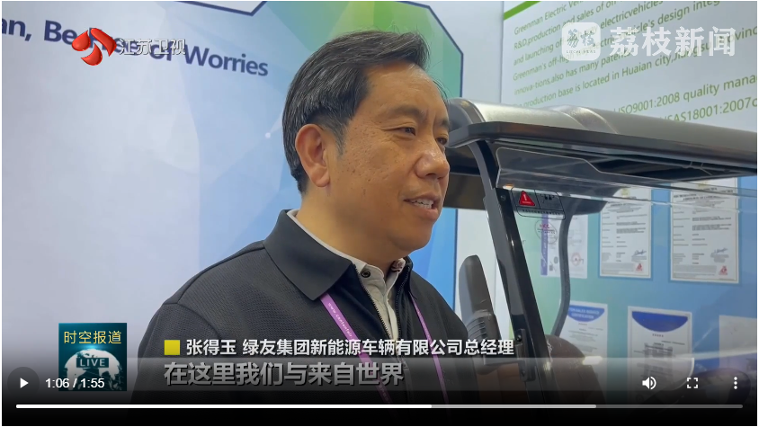 江蘇衛(wèi)視電視臺,采訪綠友集團(tuán)新能源車輛有限公司總經(jīng)理張得玉先生,他講到:在這里我們與來自世界的100多個(gè)國家和地區(qū)的采購商,面對面交流,這種深度的互動溝通,讓我們迅速捕捉到國際市場的最新變化。