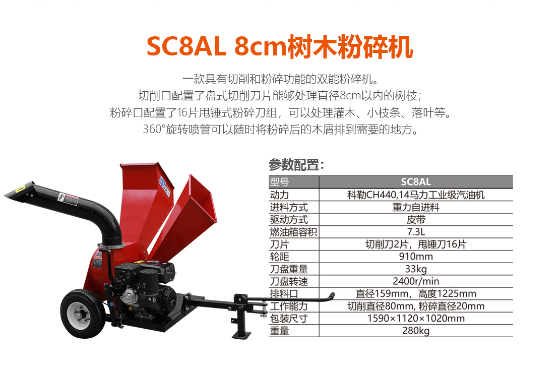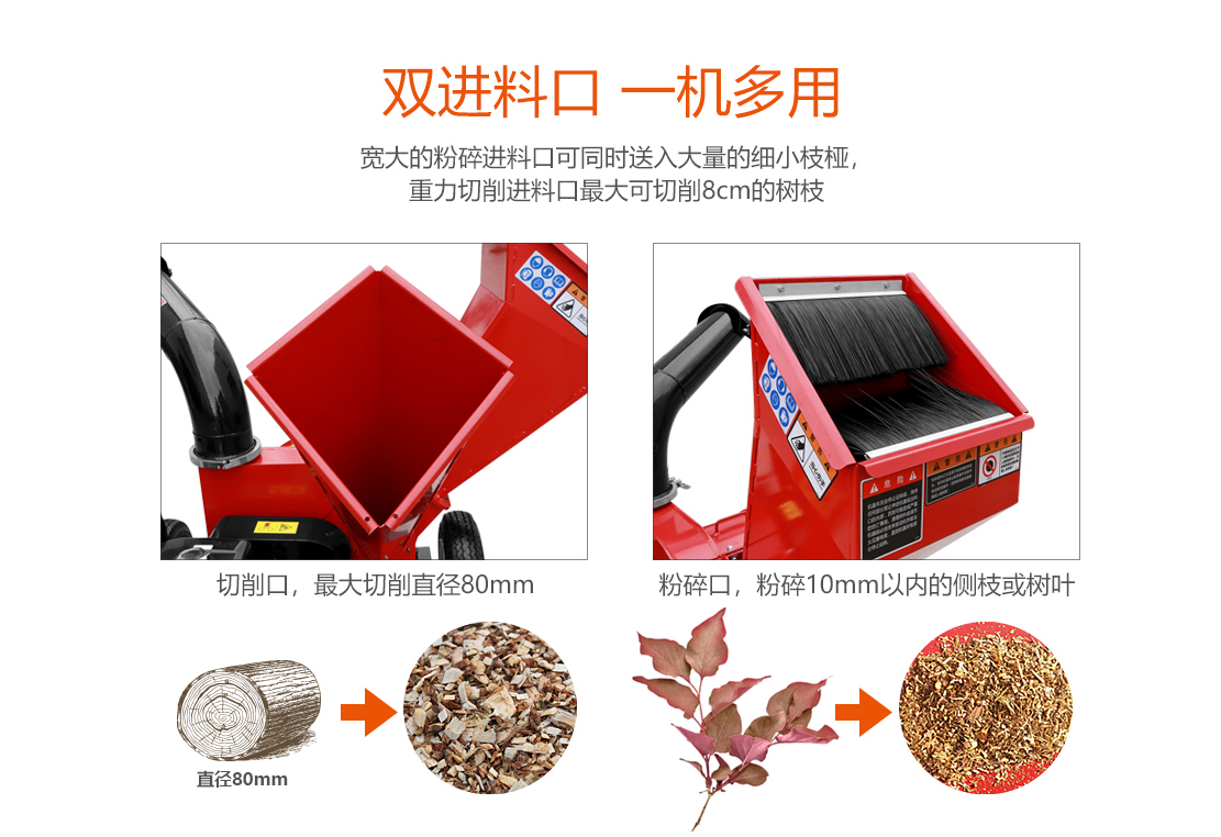綠友小粉碎機是一款徑向進料系統的商用小型粉碎機,其寬大的粉碎進料口可同時送入大量的細小枝椏,重力切削進料口最大可切削8cm的樹枝,360度旋轉出料口更方便收集及清理。