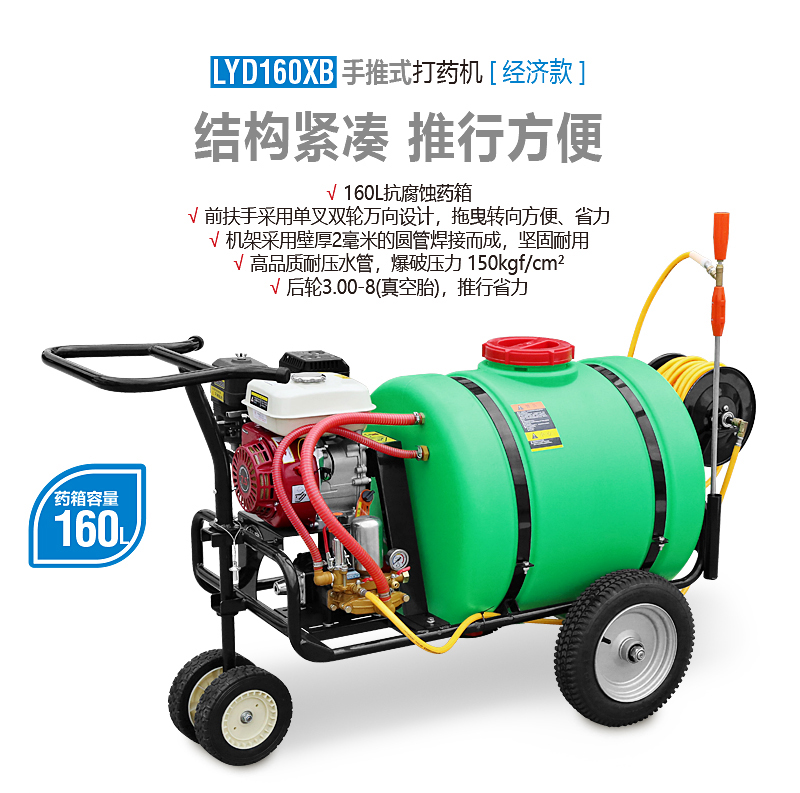 160L小型手推機動噴霧機,30米高壓軟管,可調節霧化噴槍,是園林植保、農業花卉種植、公共場所衛生消殺等作業的常用機具。