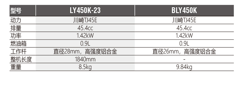 LY450K 是一款商用型割灌割草機(jī),搭載了川崎TJ45E, 45.4cc大排量發(fā)動(dòng)機(jī),保證了工作的高效、快捷。