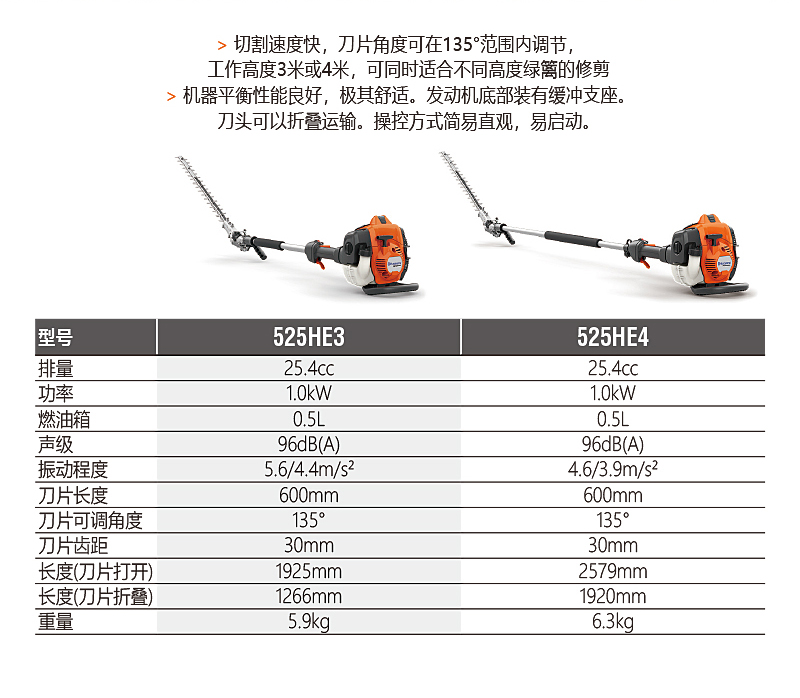 > 切割速度快,刀片角度可在135°范圍內調節,工作高度3米或4米,可同時適合不同高度綠籬的修剪。